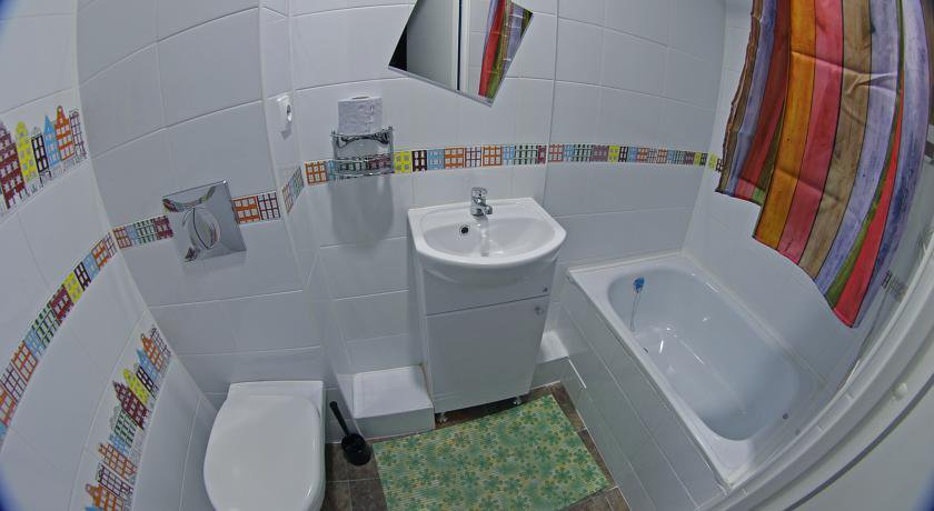 Спальное место на двухъярусной кровати в общем номере с ванной комнатой.